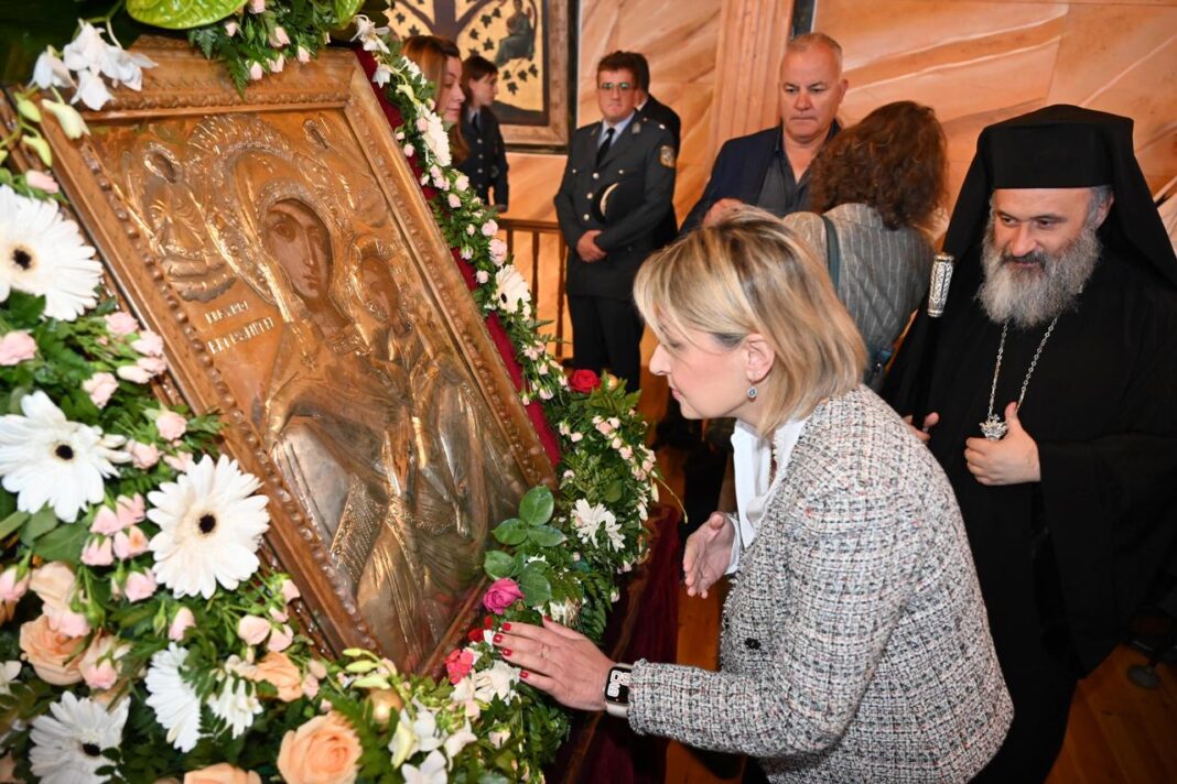 Η κυρία Αλεξοπούλου παρέστη στη Θεία Λειτουργία και στην περιφορά της Ιεράς Εικόνας. Μετά το πέρας των εκδηλώσεων έκανε την ακόλουθη δήλωση: